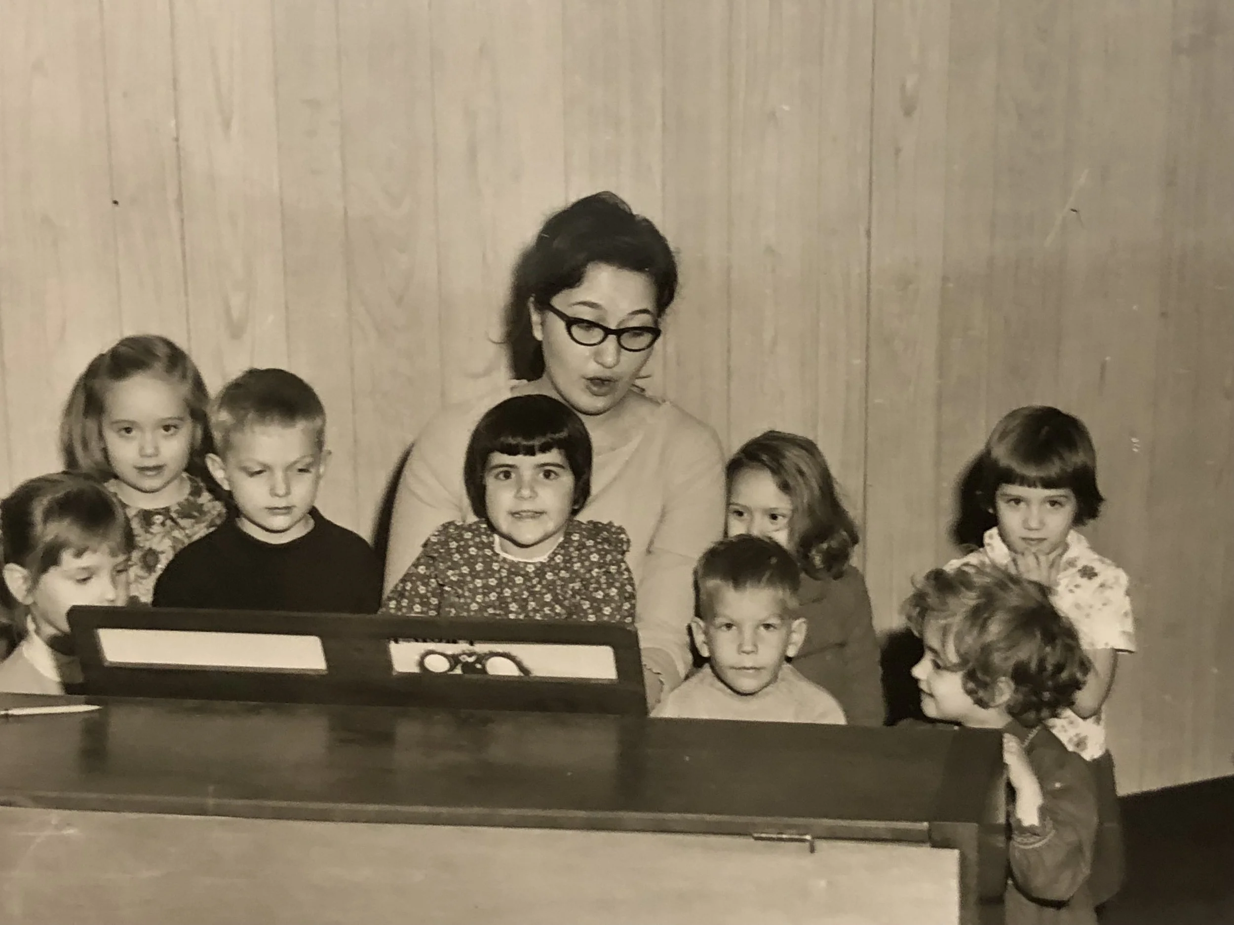 I am forever grateful to my first piano teacher, Janice Cherwick, whose love for music took root in me and sank deep into my life. Here I am in the first class of Yamaha Music School in Saskatoon.