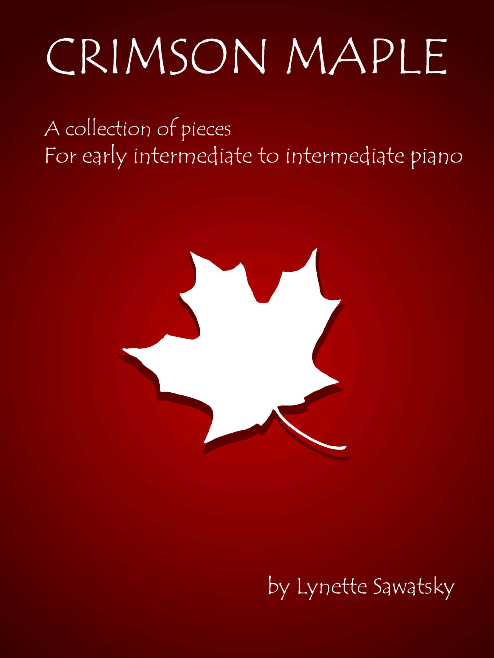 Crimson Maple is a collection of nine intermediate piano solos in a variety of styles. The programmatic Campers’ Lullaby weaves a tale about a pesky mosquito while Railroad Blues provides a fun jazz work. Students, teachers, and performers will play cover to cover, finding recreational and performance works. 24 pages. Titles include: